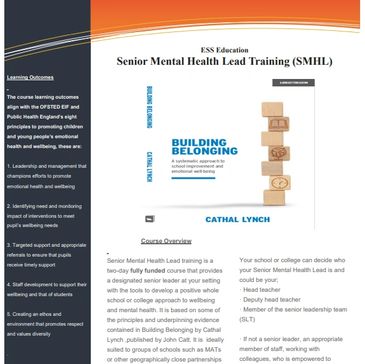 Senior Mental Health Lead training is a two-day fully funded course that provides a designated senior leader at your setting with the tools to develop a positive whole school or college approach to wellbeing and mental health. It is based on some of the principles and underpinning evidence contained in Building Belonging by Cathal Lynch ,published by John Catt..
